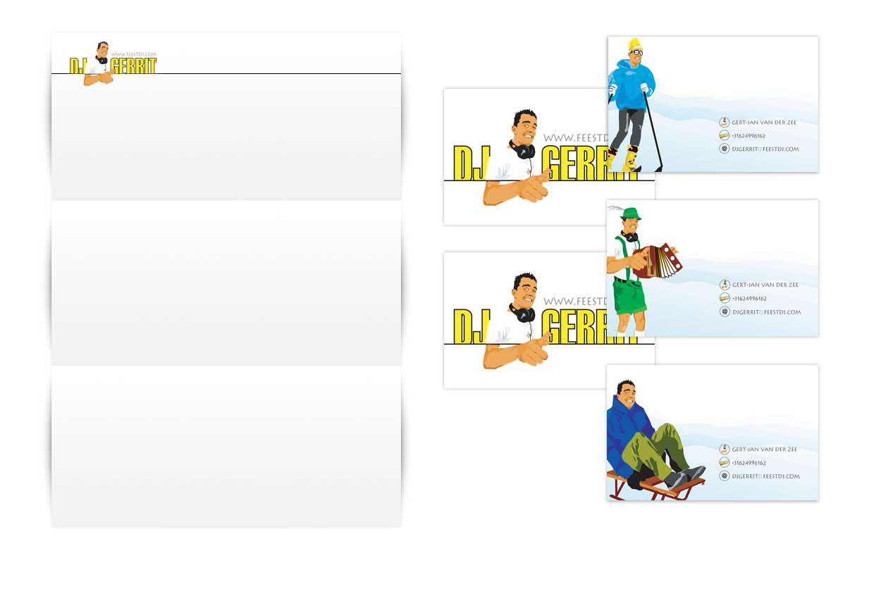StudioGM2 heeft voor de feest DJ Gerrit z’n logo ontworpen. Z’n eigen herkenbare gezicht geplaatst rond z’n naam. Het gezicht ook toegepast in andere houdingen en poses zodat de herkenbaarheid overal terugkomt. Dat is van belang. Zeker in de muziekbranche waar veel concurrentie is. “Hoe heette die DJ ook al weer bij dat onwijs kicke feest van laatst?”. Dan is het belangrijk dat je de naam van de DJ kunt onthouden.